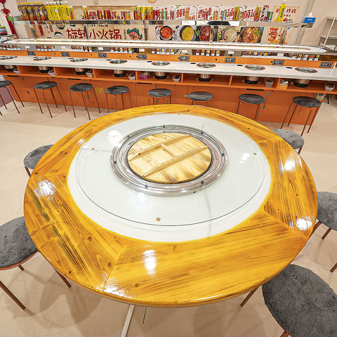 全席がゆったり配置され、食事に集中しやすい落ち着いた空気感を演出。ランチの利用はもちろん、ディナーでは回転火鍋や円卓鍋を囲みながら長時間でも快適に過ごせます。幅広いシーンで使いやすいよう工夫された空間です。