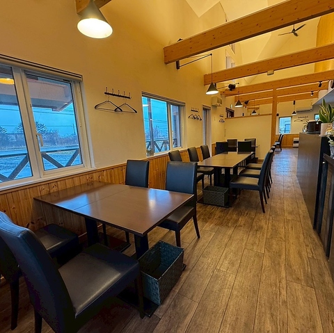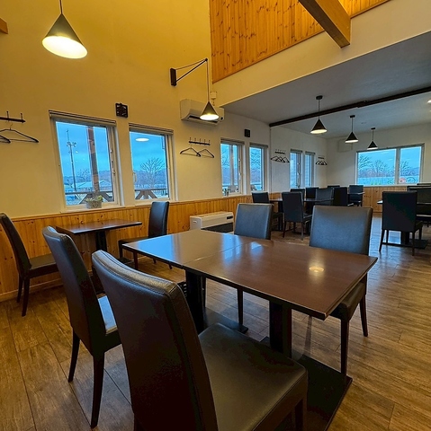 吹き抜け構造でモダンかつ温かな店内は、大きな窓から望む景色が魅力のポイント!開放的な空気感の中、家族連れやビジネス利用にも便利です◎駐車場完備でアクセスも良好♪お子様が安心して遊べるキッズスペースや丁寧な接客で、幅広い層のお客様が快適に過ごせます◎地域の食文化を存分に楽しめる上質な空間です。