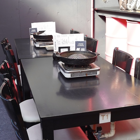 お一人様でも気兼ねなく過ごせるカウンター席を6席ご用意しております♪お仕事帰りにおいしいジンギスカンで自分を労いたい時や、大切な方とのデートにもぴったりな特等席です。スタッフとの会話を楽しみながら、目の前で焼き上がるお肉の臨場感を味わってみませんか☆