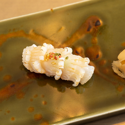 ネタの旨味を最大限に引き出すため、熟成や寝かせの技法を駆使。蒸しアワビをはじめ、厳選した素材を職人が最適な状態まで丁寧に仕上げます。赤酢と米酢を合わせたシャリや東京直送の高級海苔が、魚介の風味を一層際立たせ、一口で豊かな味わいが広がります。細かな手仕事を大切に、全工程において一切の妥協なく完成させた一貫をどうぞ。