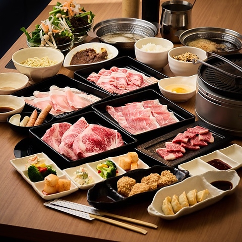 国産牛焼肉コースから石垣牛焼肉コースまで全3種類の食べ放題コースをご用意。しゃぶしゃぶとすき焼きの食べ放題に加え、香ばしい焼肉まで楽しめる贅沢なラインアップ。焼肉とお鍋を同時に楽しめる贅沢の極み。満足感が一段と高まる大充実の内容です。