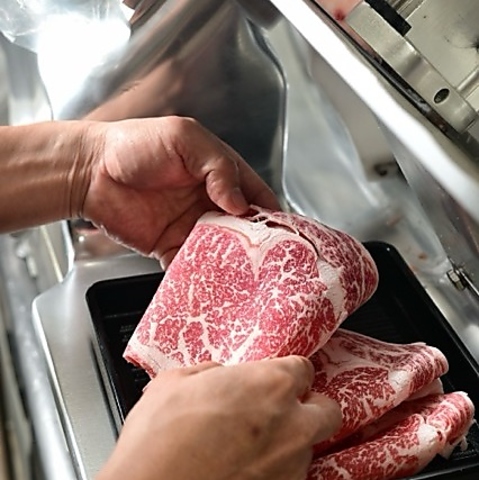 当店では、お肉の美味しさを最大限に引き出すため、温度管理を徹底しその日にスライスする厚み盛り付けにこだわり、最適な状態でご提供。鮮度の高さと、より上質な味わいをお楽しみいただけます。