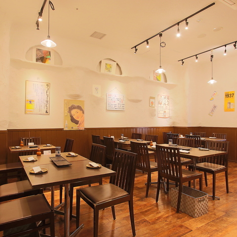 テーブル席は~10名様まで、つなげてのご利用も可能。仲間同士や小宴会にもぴったりです。他のお客様との距離も近く、自然と会話が生まれる下町ならではの空間。賑やかで温かみのある雰囲気の中、お酒と料理を楽しめます。