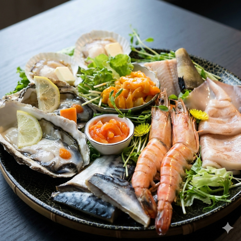 イカ/えび/ホタテ/かき/ホッケ/サバ ※時季によってメニュー内容が異なる場合があります。