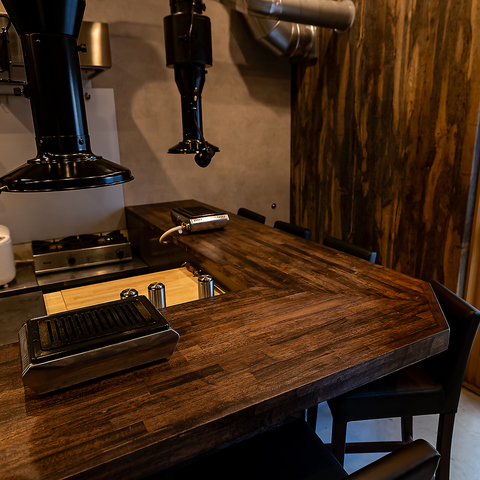 ミッドセンチュリーの温もりある木材とスタイリッシュな照明が演出する大人の雰囲気。カウンターでライブ感を楽しみ、テーブルで会話を弾ませる。黒毛和牛の旨みと空間美が織りなす、唯一無二の高級焼肉体験をお届けします。