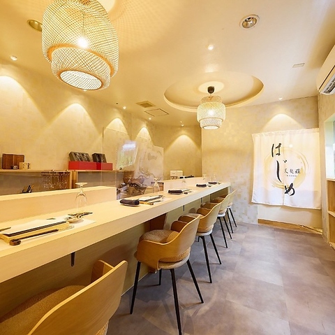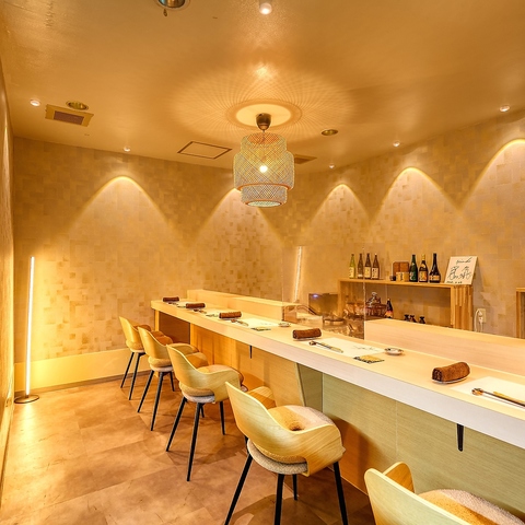 柔らかな照明が映える上質な和モダンの店内。木の温もりを感じるカウンター席で、料理が仕上がる音や香りを間近に楽しめます。落ち着いた空間は一人飲みから大切な人との特別な夜まで、心ほどけるひとときを演出します。静けさと上品さが共存する、大人のための隠れ家です。記念日にも最適。接待にも。