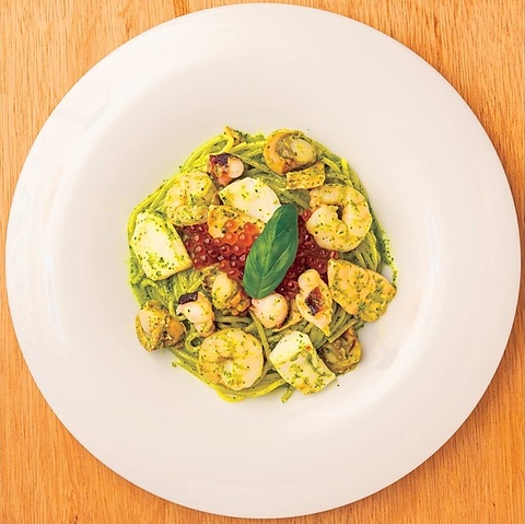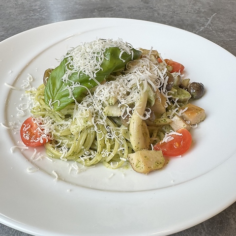 他店では味わえないような特殊なブレンドで作ったバジルソースをふんだんに作ったパスタ。口に運んだ瞬間に広がるバジルの香りとパスタの触感は他では味わえない絶品です◎ソースがふんわりと麺に絡むので食欲がそそられること間違いなし♪