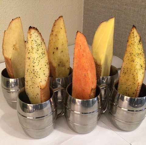 様々なフレーバーから選べるバケットは、食卓に彩りを添える魅力的な一品。はちみつや酪農バターの甘み、アンチョビの塩気など、味の広がりが楽しめるワインとの相性も抜群!(・はちみつ・明太子・酪農バター・カスタード・アンチョビ・ガーリック)