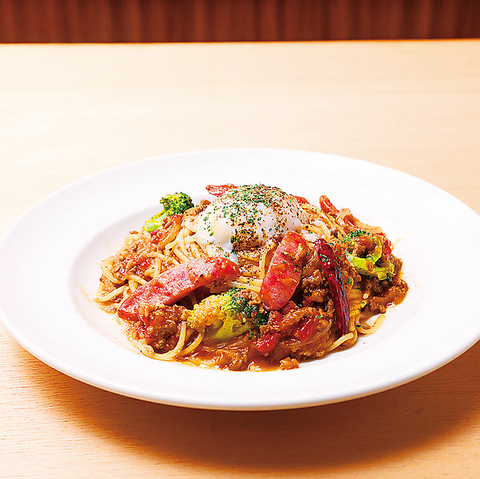産地こだわりのトマトソースや、創業以来不動の人気「ふわとろ半熟卵のクリーミーカルボナーラ」など種類豊富にご用意◎ニンニク香るペペロンチーノや和風ソースも人気です。具材たっぷりのソースはパスタと相性抜群!その日の気分に合わせてお好みの一皿をどうぞ♪