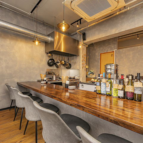 ≪シックで落ち着いた大人な空間で楽しむカジュアルビストロ♪≫シックで落ち着いた大人な空間が広がる当店では、テーブル席やカウンターを完備。デートや誕生日、記念日、各種宴会にも最適なスタイリッシュな雰囲気が自慢です。居心地の良い静かな店内で大切な方とともにすてきな食事の時間をお楽しみください。