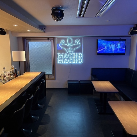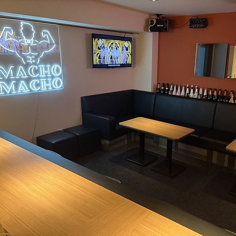 カウンター席は、マッチョの躍動を最前線で体感できる特等席!滴る汗まで見える至近距離で乾杯できます。
