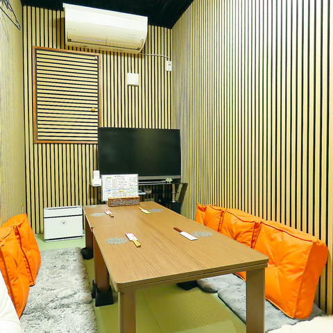 個室席は防音設備も整えておりますのでテレビ見ながらごゆるりとご家庭のようにお寛ぎ頂けます♪こちらは個室のためお部屋代を2000円ほど頂いておりますので人気のお部屋は必ず事前予約までお願いします♪お座敷となりますので足を崩して伸び伸びご利用くださいませ!