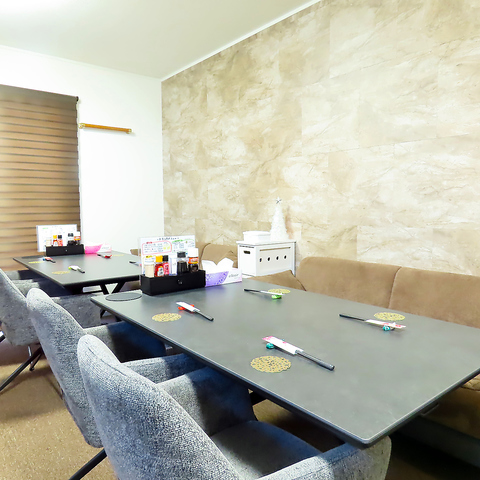 片方はソファー席となり、隣のお席を繋げて最大8名様までご利用頂けます♪また、後ろに2名席もございますので最大10名様までご利用頂けるお部屋になっております!ご宴会など貸切なども要相談で受付いたしますので事前に必ずご予約をお願い致します!