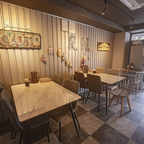 【テーブル席】店内には2名様用と4名様用のテーブル席を完備しており、ご家族での団らんやご友人とのランチ、女子会など幅広いシーンに最適です。温かみがあるアットホームな空間で、本格的なミャンマー料理を囲みながら、ゆったりとした時間をお過ごしください♪