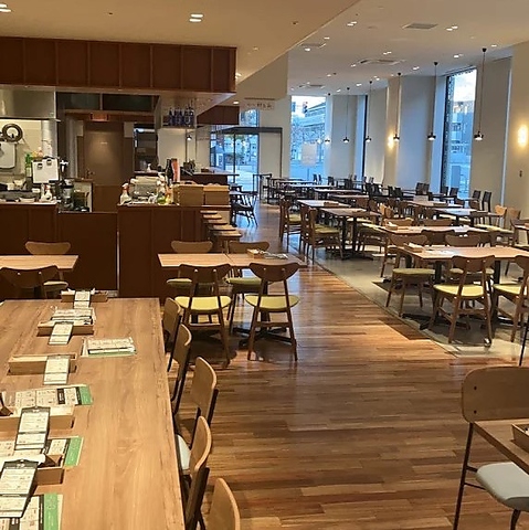 天井が高く、大きな窓から光が差し込む開放的なフードホール内は、洗練されたモダンなデザインが魅力です♪お一人様でも気兼ねなく過ごせるカウンター席から、グループで賑やかに楽しめるテーブル席まで完備。都会的でありながら、どこかホッと落ち着ける次世代の酒場空間で、大切な人とのひとときを心ゆくまでお楽しみいただけます。