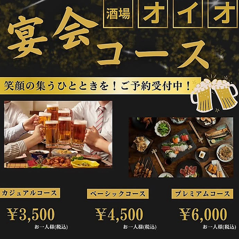 宴会を彩るコース料理も充実しています!カジュアルに楽しめる3,500円(税込)のプランから、贅沢な6,000円(税込)のプレミアムコースまで、ご予算やシーンに合わせてお選びいただけます◎大人数での打ち上げや季節の集まりには、飲み放題付きコースがおすすめ♪美味しい料理と多彩なお酒で、賑やかで楽しい宴のひとときを演出します。