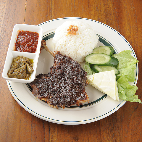 忙しい合間のランチタイムを、一気に南国リゾートへ!ワンプレートに盛り付けられた「ナシチャンプル」は、肉・魚・野菜の多彩なおかずとご飯のバランスが絶妙で、栄養も満点です。香ばしく焼き上げたサテや揚げたてのえびせんべいの食感は、午後への活力をチャージしてくれます。異国情緒あふれる香りで、至福の休憩時間を過ごしませんか。