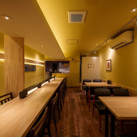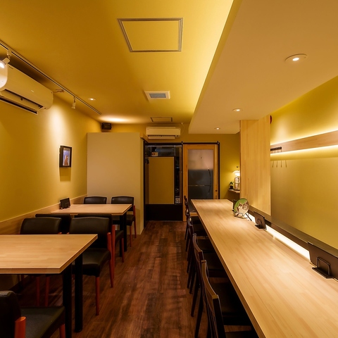 1~4名様でのご利用に最適な当店は、カウンター席が中心の構成で、視界が広がりつつも隣席との距離感に配慮された落ち着きある設計です。会話を楽しみながら料理とお酒を堪能できる雰囲気は、大人の隠れ家を思わせる心地良さ。少人数だからこそ満喫できるゆるやかな時間が広がります♪