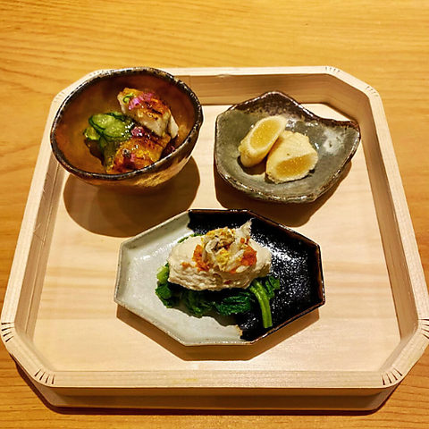 旬の移ろいを一皿に映し出す、店主渾身の逸品料理。鮮度際立つお造りをはじめ、絶妙な火入れで旨味を閉じ込めた赤身肉、繊細な出汁が香る椀物など、妥協のない手仕事が光ります。素材本来の持ち味を最大限に引き出した、お酒が進む肴の数々。確かな技術と四季の恵みが織りなす、贅沢な美食の時間をお愉しみください。