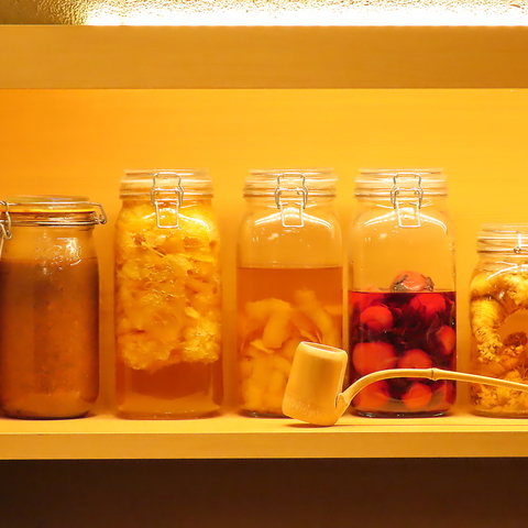 女性やお子様にも嬉しい自家製発酵シロップございます。炭酸水やアルコールで割ってお楽しみください。