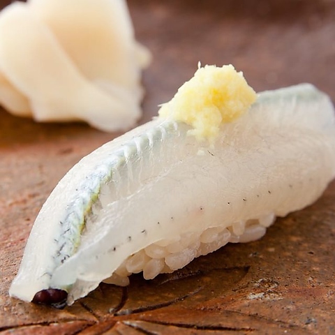 大将自ら豊洲市場へ足を運び、選び抜いた四季折々の鮮魚をご提供いたします。シャリには佐渡産のコシヒカリを使用。砂糖を使わず、酢と塩のみで仕上げることで、素材本来の持つ甘みや旨味を最大限に引き出しています◎旬の素材が持つポテンシャルを、熟練の職人技で昇華させた握りの数々をお楽しみください。