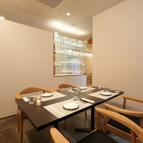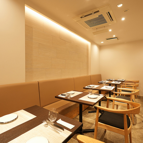 お席は、特別な日を彩る「2名様テーブル」7卓、そして「4名様テーブル」をご用意♪落ち着いた雰囲気の中で、大切な方とのデートや記念日はもちろん、華やかな女子会や各種ご宴会まで、シーンに合わせて幅広くご利用いただけます。ゆったりと流れる贅沢な時間をお過ごしください。