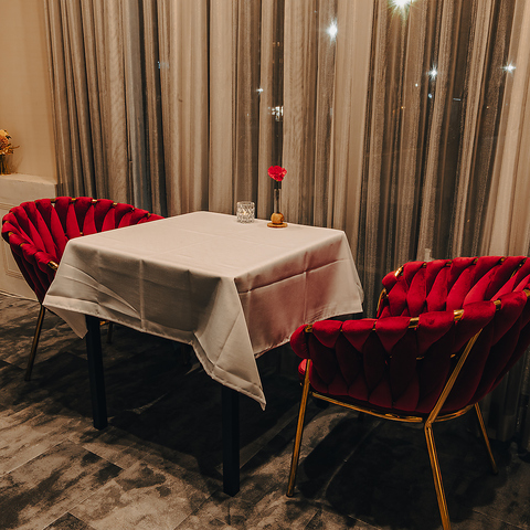 夜は照明を落とし、各テーブルに灯るロウソクの火が幻想的なムードを演出します。全16席の限られた空間は、まさに大人の隠れ家。肩を並べて会話が弾むカウンター席や、ゆったり過ごせる2名掛けのテーブル席は、大切なデートや記念日に最適です。都会の喧騒を忘れ、静寂と美食に酔いしれるひとときを。