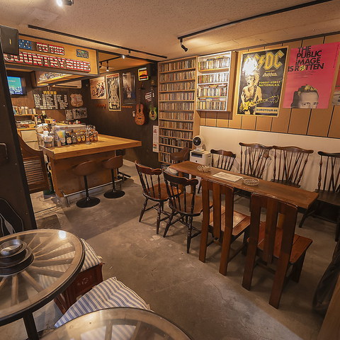 リニューアルした際にオーナーの知人職人が丹精込めて作り上げた手作りの木製テーブルと椅子を導入しました♪暖色の照明が優しく照らす暗めの店内は、音楽を愛する大人のための隠れ家。こだわりのインテリアに囲まれながら、心地よい音色に身を委ねる贅沢な時間をお過ごしください。