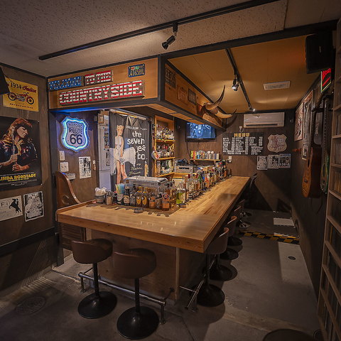 創業50年の歴史を感じさせるビンテージな雰囲気に、職人技が光る一点物の木製家具が調和しています◎木の質感を肌で感じられる椅子に腰掛ければ、まるでお気に入りの書斎にいるような安心感。暗めの照明が落ち着いた夜を演出し、音楽を聴きながらゆったりとお酒を嗜むのに最適な空間です。