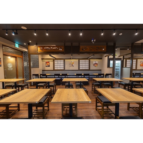 | テーブル | 4名様×9 | 大人数でのご宴会も可能な稼働式テーブル席♪テーブル席でわちゃわちゃ思う存分楽しめちゃいます♪少人数でのサク飲みはもちろん、学生、サークル、会社宴会等の大型宴会にも最適!! |