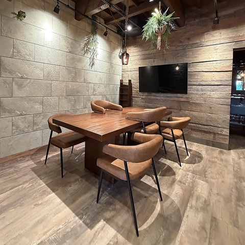 ≪心落ちつくお洒落な店内♪≫どんなシーンでも使いやすい、落ち着きのある洗練された空間♪木目調を活かした温かい内観は、心身共にリラックスできる雰囲気◎デートや記念日など少人数でのご利用に最適なカウンター席やテーブル席をご用意しております。レイアウト変更自由で10名規模のお食事にも最適です◎