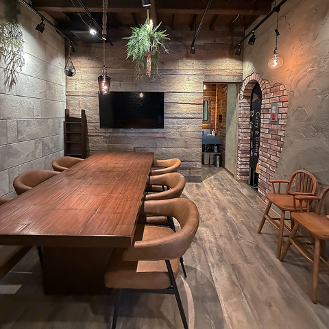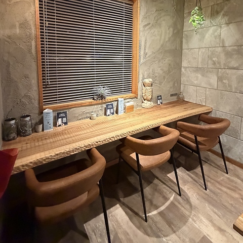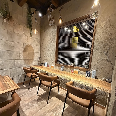 ≪心落ちつくお洒落な店内♪≫どんなシーンでも使いやすい、落ち着きのある洗練された空間♪木目調を活かした温かい内観は、心身共にリラックスできる雰囲気◎デートや記念日など少人数でのご利用に最適なカウンター席やテーブル席をご用意しております。レイアウト変更自由で10名規模のお食事にも最適です◎