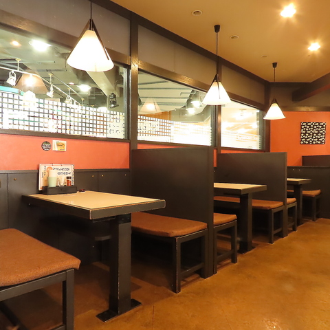 【半個室風のテーブル席】温かみのある照明が灯る半個室風のテーブル席。程よく仕切られているため、周囲を気にせず会話とお食事を楽しめます。デートや少人数利用にもおすすめです。
