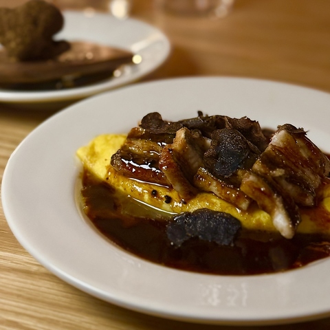 クリーミーな卵がアナゴのムニエルに寄り添う至高のマリアージュ。トリュフを加えることで、風味が一段と引き立ち、特別なひと時を演出します。。ふわっとした食感と香ばしさが口の中で一体となり、見た目にも華やかで、おもてなし料理としても喜ばれること間違いなしです。大切な方との特別なお時間に是非ご利用ください。