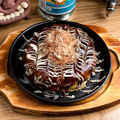 お好み焼をはじめ、鉄板の上でくるっと巻くだしまき玉子や、沖縄定番家庭料理のゴーヤチャンプル、お肉料理から野菜料理まで、鉄板メニューをたーくさんご用意してます!