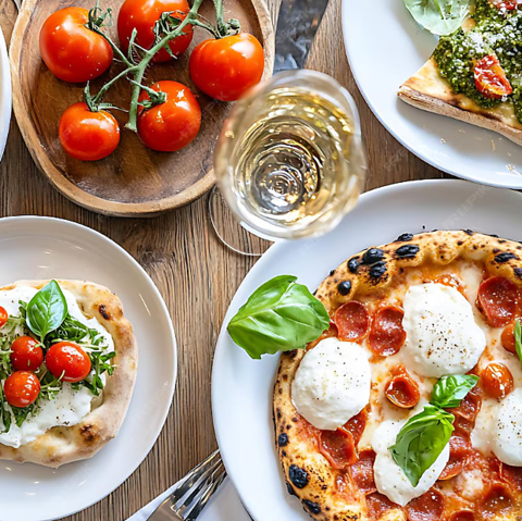 石窯で焼き上げる本格ピザと、スパークリングワイン。この組み合わせは、まさにイタリアン居酒屋の醍醐味です。高温の石窯でカリッと焼き固められた生地の香ばしさと、シュワッと弾ける泡の刺激は相性抜群!自慢のアテに、お一人様でグラスを傾けるのも天満流の粋な楽しみ方。ご来店お待ちしております。