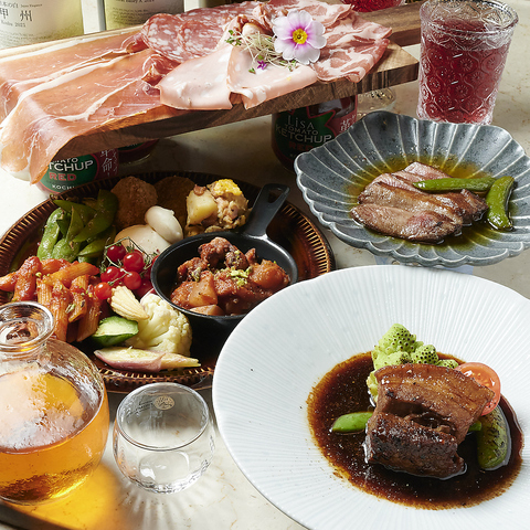 ビストロ料理を中心に、名物「なにわ黒牛」などお酒が進む一品を豊富にご用意。木の温もりを感じる落ち着いた空間で、仕事帰りの一杯からデート、友人との食事まで幅広いシーンにご利用いただけます。肩肘張らず、心地よい時間をお過ごしください。