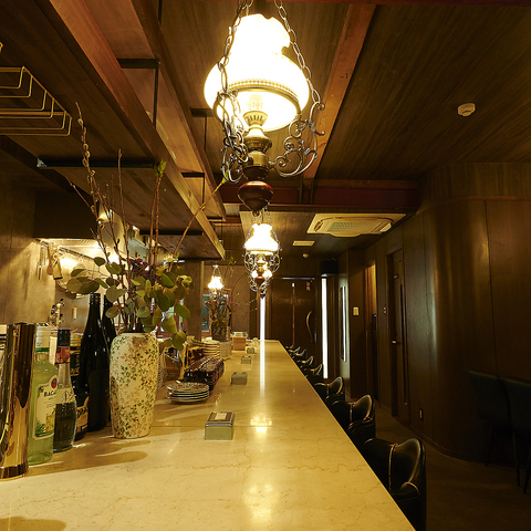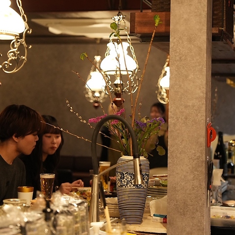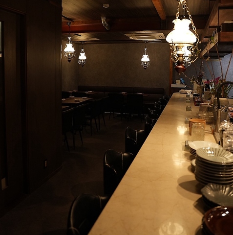 照明の明るさやインテリアの色味を抑え、リラックスできる雰囲気を演出しています。カウンター席は距離感が心地よく、初めてのデートや女子会にもぴったり。料理やドリンクがきれいに映る空間で、会話と写真、どちらも楽しめるよう細部までこだわりました。