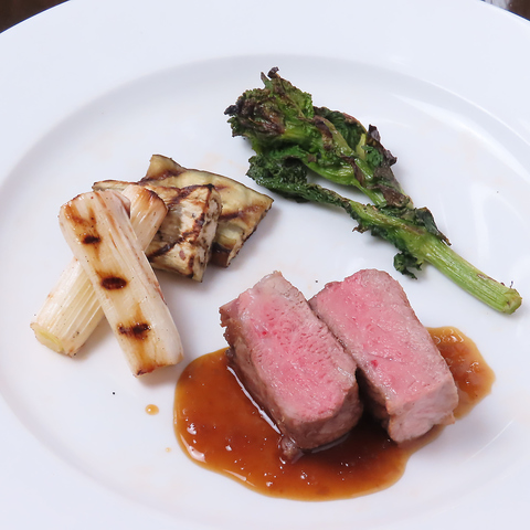 蔵王の清らかな水と澄んだ空気、こだわりの飼料で育ったお肉は、脂の甘みとキメ細かな肉質が格別です。じっくりと丁寧にグリルすることで、驚くほど柔らかくジューシーな仕上がりに。旬の焼き野菜と共に、素材本来の旨みを存分にご堪能ください。
