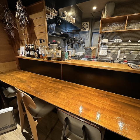 調理の活気を間近に感じるカウンターを5席ご用意。店主が地元の旬を自由な発想で仕立てる、ここだけの驚きと美味しさを、心安らぐ居心地の良い空間で。