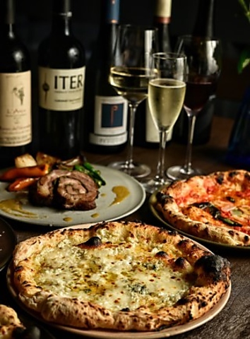 当店の本格ピッツァで乾杯!ルーフトップ式のテラス席は夕暮れ時や夜の雰囲気が素敵です◎