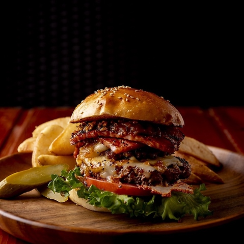 当店のハンバーガーメニューは高加水生地のパンと超粗挽き肉パティが自慢!本格的な味を気軽にご提供