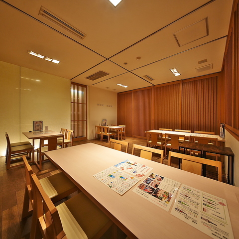 明るく落ち着いた雰囲気の店内でくつろぎのひとときを。店内は木目調のインテリアで統一された、『木』のぬくもり溢れる落ち着いた雰囲気となっております。少人数様向けの個室は気の知れた仲間との飲み会,外せない接待など幅広いシーンにご利用頂けます。