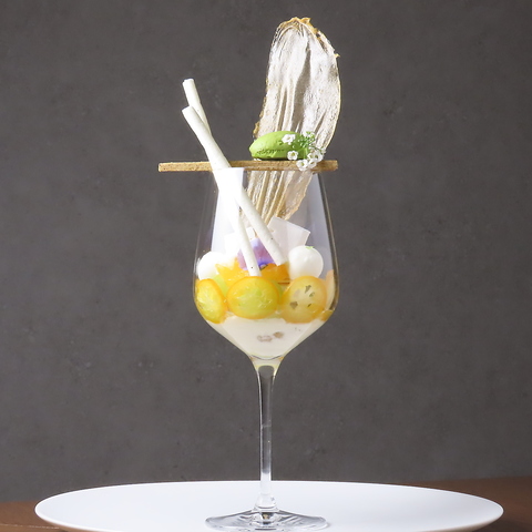 季節ごとに変わるフルーツがたっぷり詰まった一杯は、まさに至福のデザート♪見た目も華やかで、食べる前から心が躍る。ボリューム感も満点で、食べ終わる頃には満足感が広がること間違いなし!美しい仕上がりのパフェは、ウエディングケーキを手がけるパティシエが作ったものです!