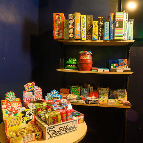 当店には駄菓子のご用意もございます。バーという大人の社交場ではあるものの、童心に戻って楽しんでいただけるよう、たくさんのゲームと駄菓子をご準備いたしました。あの頃好きだったお菓子や、当時の思い出にも浸りながら、ステキなひと時をお過ごしください。