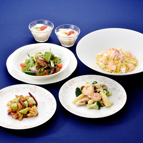 ●ご利用時間 11:30~14:30(L.O.)※ご利用は2名様以上でお願い申し上げます。 3名様以上でご利用の場合: 追加料金 おひとり様 ¥3,500(税・サ込)【26年3月のメニュー/全6品】・くらげ入り中華サラダ・海老と白身魚 ブロッコリーの塩味炒め・鶏肉と烏賊の満天星唐辛子炒め・海の幸入り炒飯・杏仁豆腐・コーヒー※仕入れ状況などにより、メニュー内容が変更となる場合がございます。