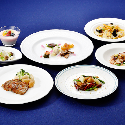 全40種類、食べ放題のランチバイキング!出来立て熱々の中国料理を座ったままでゆっくりと、お好きなものをお好きなだけお愉しみください。●料金大人 6000円(税・サ込)65歳以上 5000円(税・サ込)小学生 4000円(税・サ込)4歳以上~未就学児 2000円(税・サ込)●ご利用時間 11:30~13:00ご入店まで ※90分制※仕入れ状況などにより、メニュー内容が変更となる場合がございます。