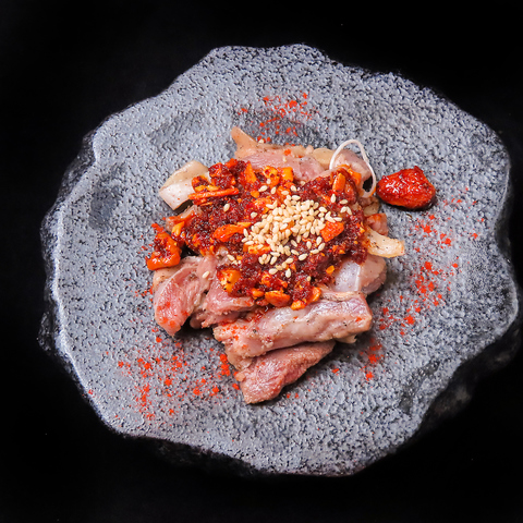 薩摩知覧鶏は脂が控えめで後味が良いのが特徴。しつこさがなく、炭火焼きやタタキなどシンプルな調理で真価を発揮します!強い火力で一気に火入れすることで、香ばしい皮と弾力ある身の旨みを引き出しました。鶏本来の美味しさを存分に楽しめる、食べ応え抜群の一品です◎