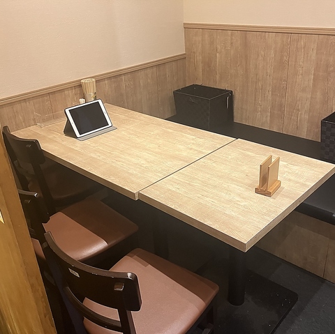 カウンター席や2~4名向けのテーブル席など、少人数で落ち着ける席を多数完備しています。視線を気にせずに過ごせる居心地の良いレイアウトが魅力で、デートやちょっとした会食にも対応◎木のぬくもりを感じる空間でくつろげます☆