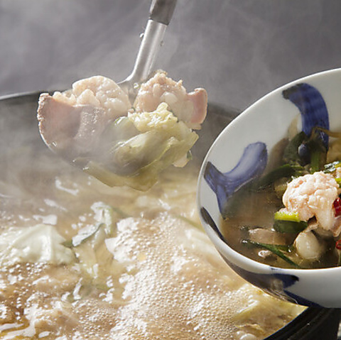 焼き鳥屋ならではスープが決め手の牛もつ鍋は、濃厚な旨味醤油味。豪華宴会コースもご用意しております◎